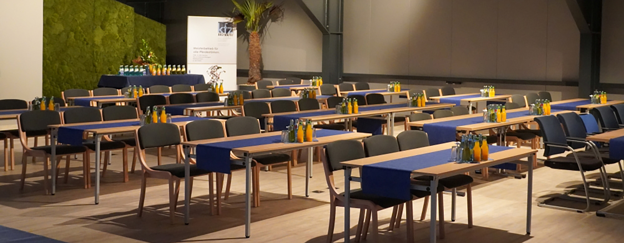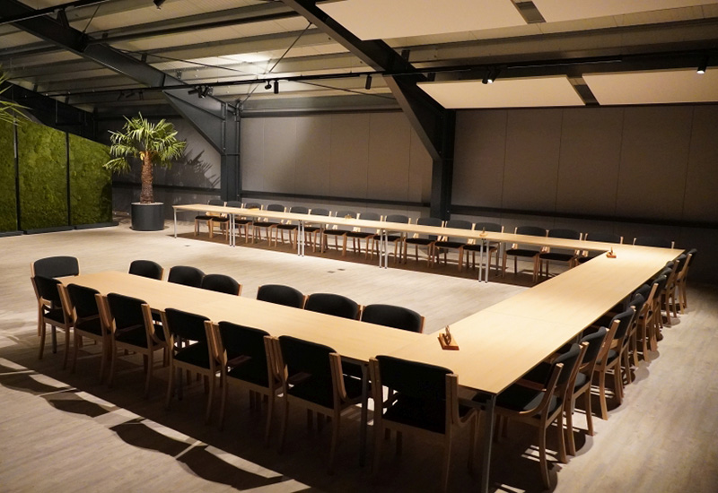Ob Meeting, Themenvortrag, Seminar, Vertreter – oder Mitarbeitertagung, externer Workshop oder interne Schulung oder Ausstellung – der 220 qm große, moderne Multifunktionsraum mit flexibler Bestuhlung, hervorragender Lichttechnik und – für schwere Fälle – einem Schwerlastboden: Sie finden bei uns, was Sie brauchen! Der Tagungsraum liegt im Obergeschoss und kann durch eine zwei Meter breite Flügeltüre mit Ausstellungsstücke befahren werden. Der Raum hat eine Fußbodenheizung und die Frischluftversorgung im Oberlicht sorgt für ein klares Klima. Der Saal hat eine hervorragende Akustik und eignet sich besonders für Tagungen und Kleinkunst. Eine zwölf Meter lange Faltwand ermöglicht ein Abtrennen oder Verkleinern des Raumes welcher mit Jalousien abschirmbar ist. Eine umlaufende Deckentraverse ermöglicht die Beleuchtung von Ausstellungsobjekten. Es steht eine moderne über Tablet steuerbare Präsentationstechnik zur Verfügung. Flipchart und Rednerpult sind selbstverständlich.